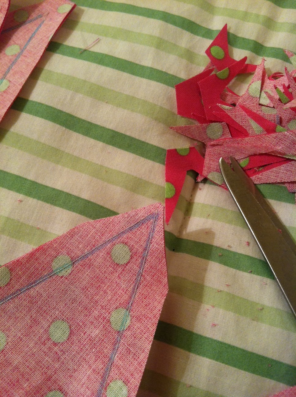 After sewing, I cut the triangles apart.....
